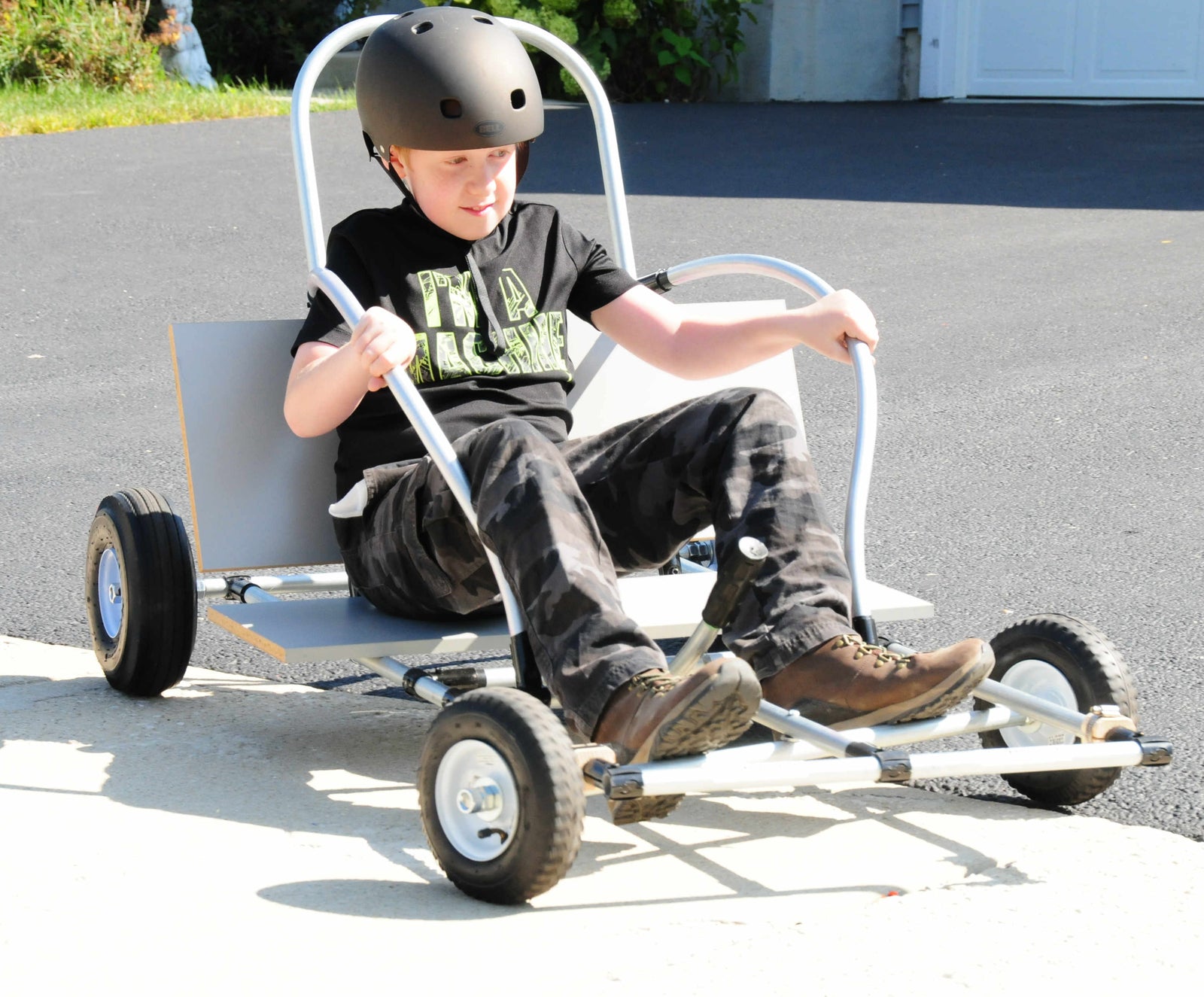 Brett and Malachi are a father and son team from just outside Chicago. They built a DIY push cart gravity racer out of Maker Pipe that really blew us away. It is reminiscent of the soap box derby car racers that everyone has seen but with a different twist. We loved it so much that we featured them on our NYC Maker Faire flyer! Their build really shows off their teamwork and creativity.